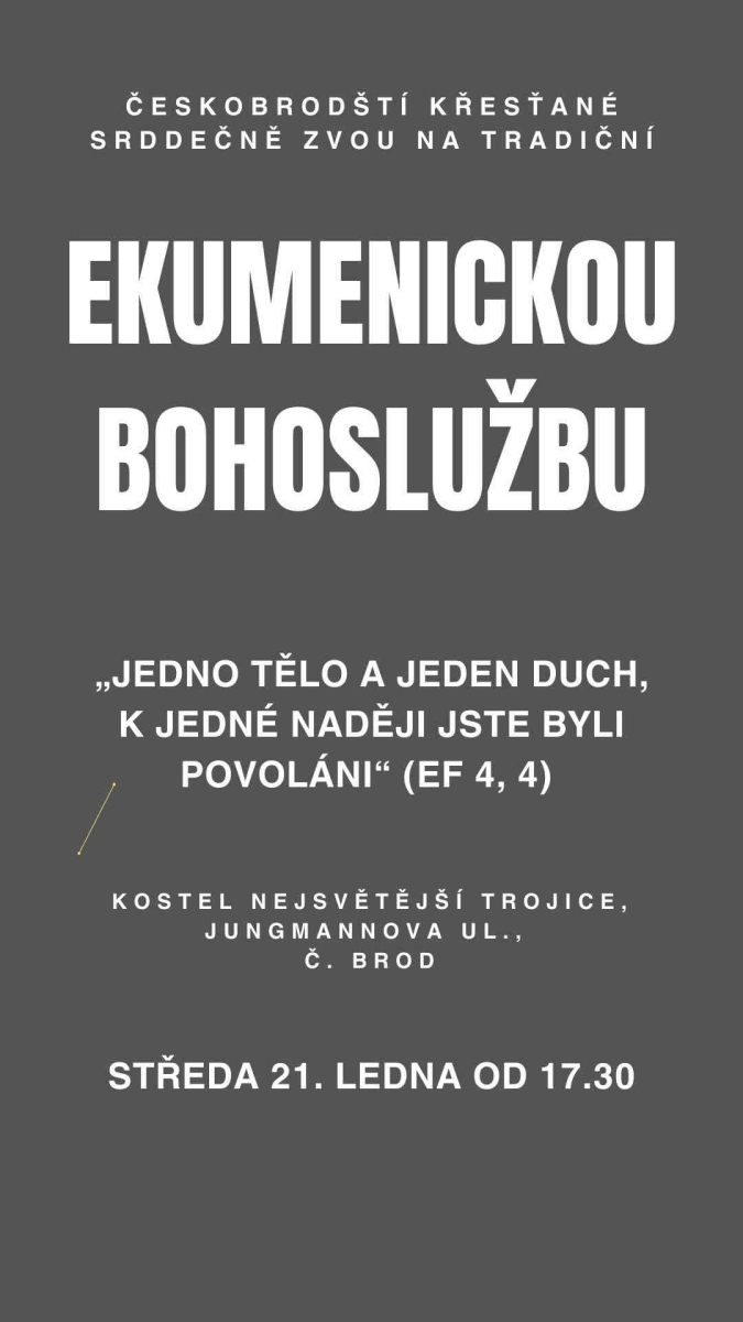 Ve středu 21.1. zveme na Ekumenickou bohoslužbu do kostela N. Trojice - od 17.30.